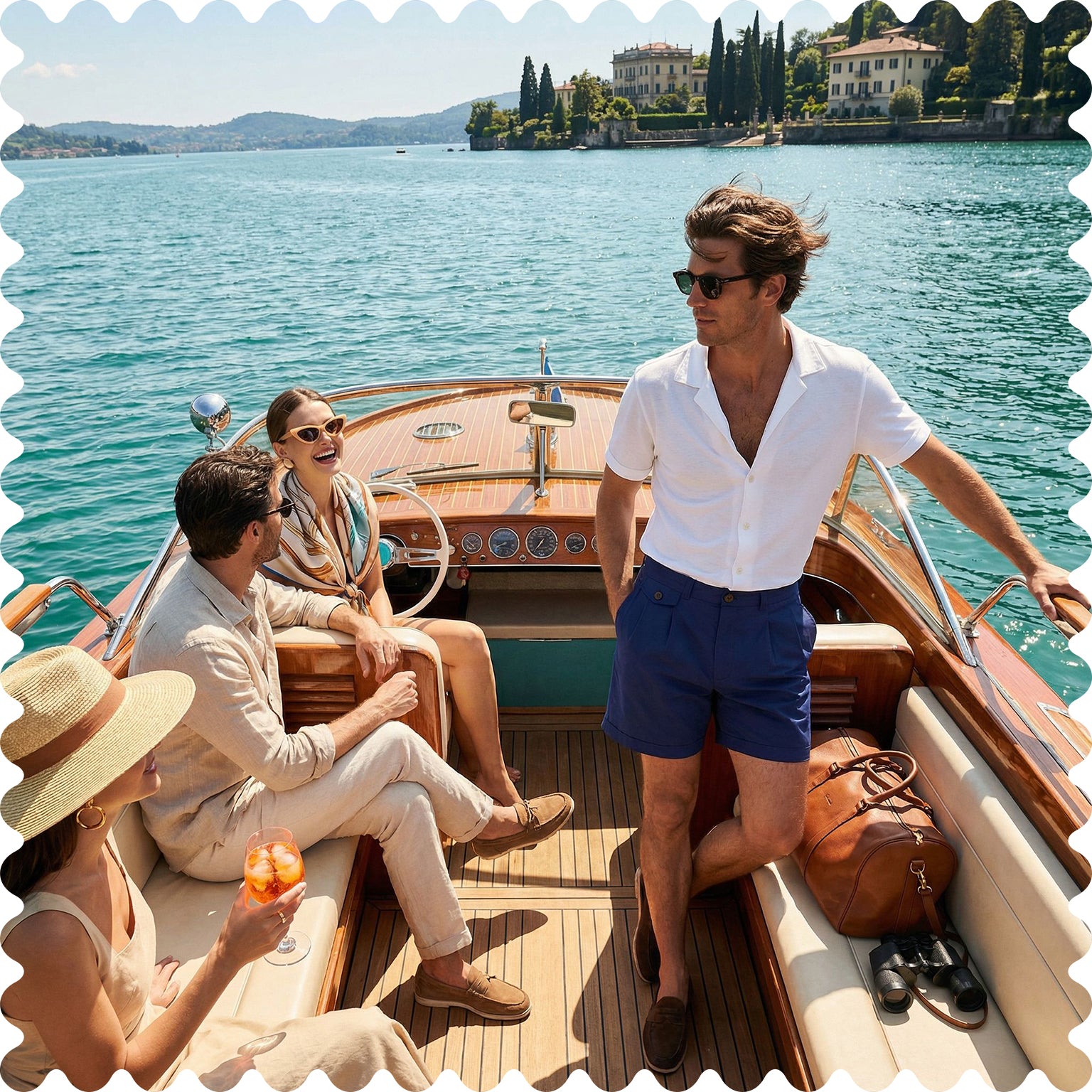 Ogni costume è disegnato, realizzato e confezionato a mano a Como, con tessuti pregiati e dettagli sartoriali che riflettono lo stile senza tempo della bella vita made in italy.